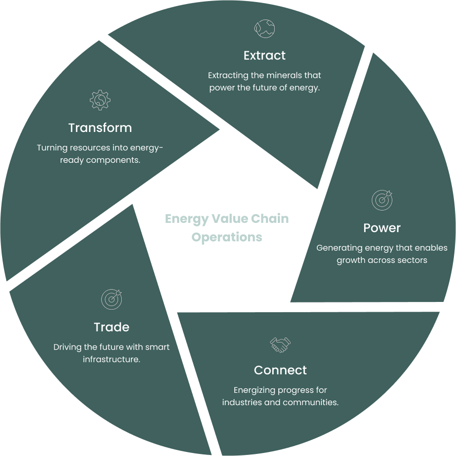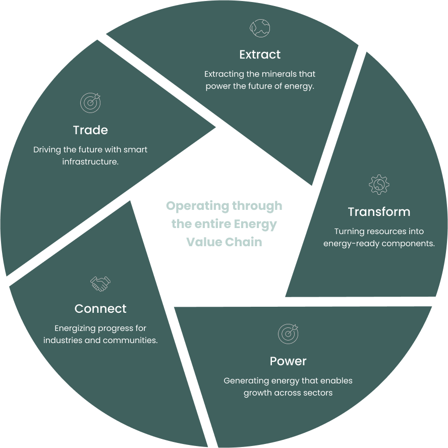 To deliver end-to-end energy solutions—from securing critical resources and manufacturing essential components to generating power and advancing downstream infrastructure—creating a dynamic network that fuels industries, governments, and the digital economy.